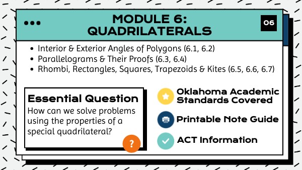 - Rhombi, Rectangles, Squares, Trapezoids & Kites (6.5, 6.6, 6.7)