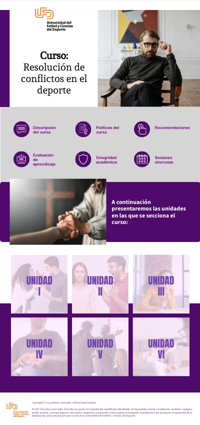 Copyright © 2024 Diseño curricular | Edición universitaria©UFD. Derechos reservados. Esta obra no puede ser reproducida, modificada, distribuida, ni transmitida, parcial o totalmente, mediante cualquier medio, método o sistema impreso, electrónico, magnético, incluyendo el fotocopiado, la fotografía, la grabación o un sistema de recuperación de la información, sin la autorización por escrito de la Universidad del Futbol y Ciencias del Deporte.
