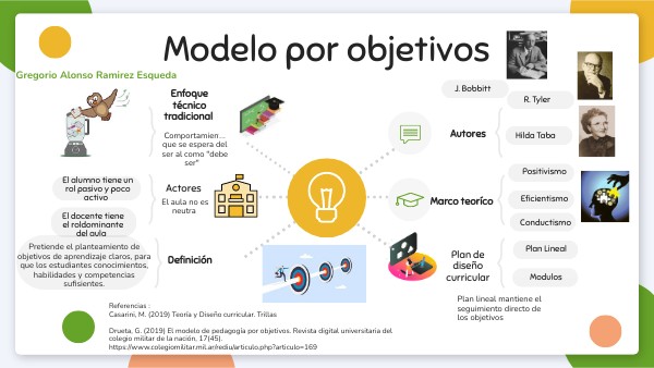 Referencias :Casarini, M. (2019) Teoría y Diseño curricular. Trillas Drueta, G. (2019) El modelo de pedagogía por objetivos. Revista digital universitaria del colegio militar de la nación, 17(45). https://www.colegiomilitar.mil.ar/rediu/articulo.php?articulo=169