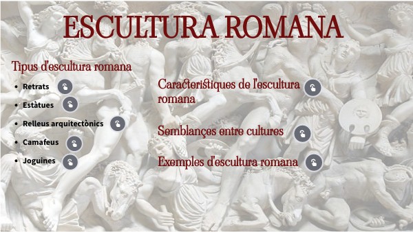 L'escultura romana va combinar la perfecció idealitzada de l'escultura grega clàssica amb una major aspiració al realisme. També va absorbir les preferències artístiques i els estils d'Orient per a crear imatges en pedra i bronze que es compten entre les millors obres de l'antiguitat. No obstant això, l'escultura grega s'enfoca més en la bellesa idealitzada de déus i mitologia, mentre que la romana prioritza el realisme de personatges i esdeveniments històrics. Una altra diferència és que els grecs buscaven la joventut en les seves obres, mentre els romans representaven persones de totes les edats. Però una cosa que tenien en comú en les dues civilitzacions és que buscaven la idealització.