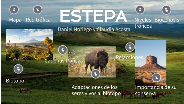 La estepa s un ecosistema caracterizado por ser un ecosistema terrestre alejado de ríos, mares... con lo cual el ecosistema tiene mucha escasez de agua, el suelo es plano. La vegetacion de este ecosistema consta de planta, las cuales tienen raíces largas y no necesitan de mucha agua.