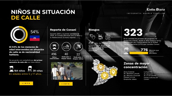El 54% de los menores de edad intervenidos en situación de calle es de nacionalidad haitiana.