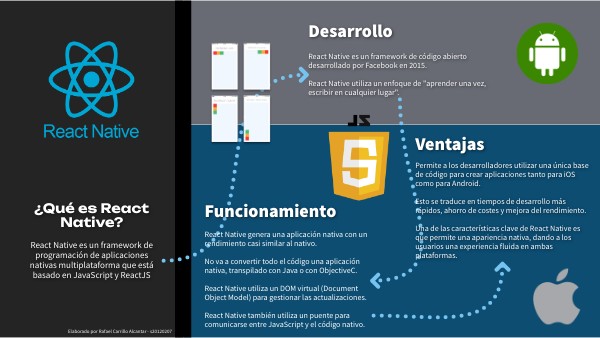 React Native es un framework de programación de aplicaciones nativas multiplataforma que está basado en JavaScript y ReactJS