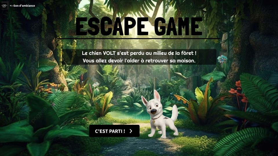 Le chien VOLT s'est perdu au milieu de la fôret ! Vous allez devoir l'aider à retrouver sa maison.