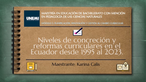 Attias, C. (25/04/2025). Niveles de Concreción del CURRICULUM. https://prezi.com/2zmcgiuoo4ia/niveles-de-concrecion-del-curriculum/ Guerrero, I., (12/12/2021). ¿Qué es la concreción curricular y por qué es importante? https://isaacguerrerop.com/que-es-la-concrecion-curricular/ Herrera Pavo, M. y Cochancela Patiño, M. (2020). Aportes de las reformas curriculares a la educación obligatoria en el Ecuador. Revista Scientific 5(15). 362-383. Oviedo Oviedo, A. (2021). Las reformas curriculares a la educación básica ecuatoriana en la década de los 90. Universidad Andina Simón Bolívar. Romero, D. y Ochoa, L. (2015). Instructivo para planificaciones curriculares para el sistema nacional de educación. Ministerio de educación de Ecuador.
