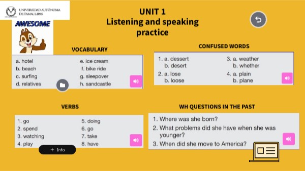 1. HotelI was at the hotel.I was not at the hotelWas I at the hotel?2. BeachI was at the beach. I was not at the beach. Was i at the beach? 3.Surfing She was surfing She was not surfing Was she surfing? 4. Relatives I visited my relatives I did not visit my relatives Did I visit my relatives?