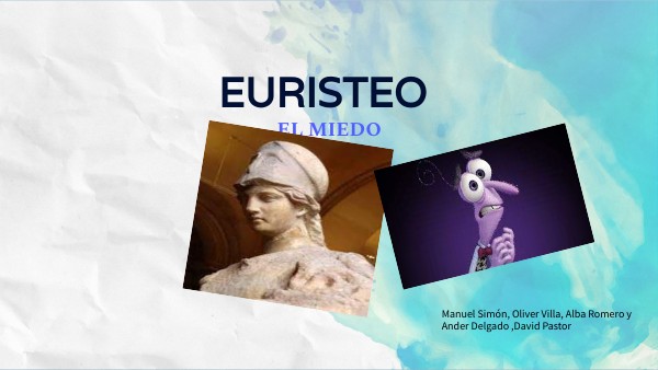 Soy Euristeo, hijo de Estenelo y heredero del trono, pero tengo mucho miedo de Hércules (mi primo) debido a que él es el verdadero heredero. Y, para deshacerme de él, debido a mi gran miedo de enferentarlo porque soy un cobarde, le he mandado doce trabajos, los cuales son muy peligrosos. Esto lo hago para matarlo y deshacerme de él.