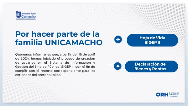 Queremos informarles que, a partir del 16 de abril de 2024, hemos iniciado el proceso de creación de usuarios en el Sistema de Información y Gestión del Empleo Público, SIGEP II, con el fin de cumplir con el reporte correspondiente para las entidades del sector público.