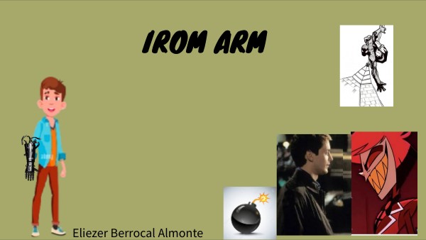 ºAl día siguiente fue al instituto pero antes de irse encuentra en un callejon a Iron man herido y le dice hola hijo no me queda mucho tiempo de vida asi que te doy mi brazo de hierro es muy poderoso no se lo des a nadie
