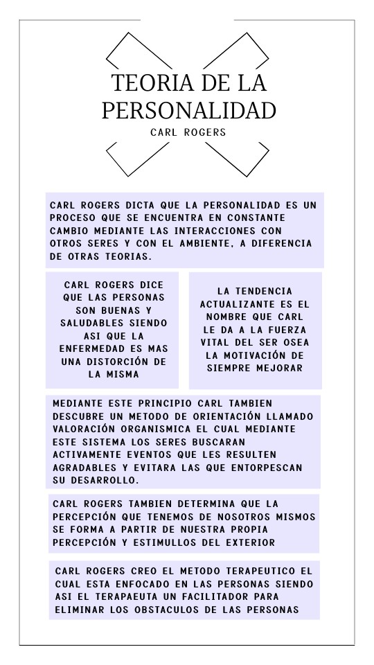 Carl Rogers dicta que la personalidad es un proceso que se encuentra en constante cambio mediante las interacciones con otros seres y con el ambiente, a diferencia de otras teorias.