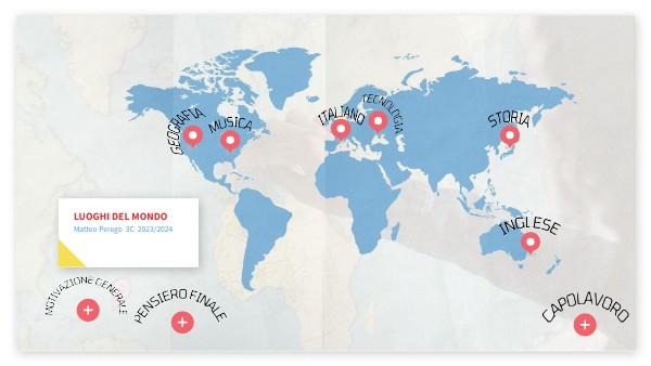 Ho scelto come macrotema "Luoghi del mondo" perché viaggiare è un mio grande desiderio. Viaggiare mi affascina e incuriosisce, perchè significa visitare posti nuovi, conoscere gli usi e le tradizioni delle altre nazioni ed entrare in contatto con realtà diverse dalla mia.