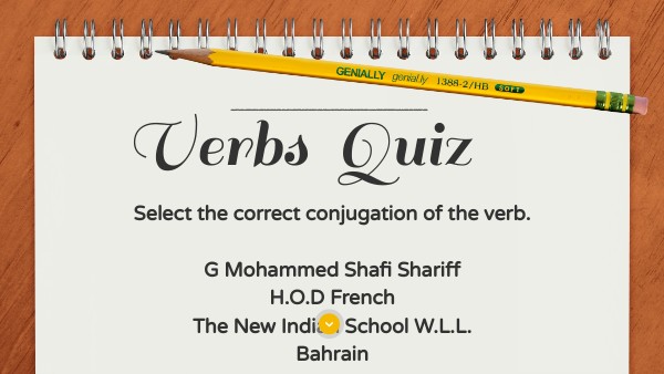 Select the correct conjugation of the verb. G Mohammed Shafi Shariff H.O.D French The New Indian School W.L.L. Bahrain