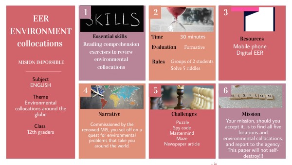 Your mission, should you accept it, is to find all five locations and environmental collocations, and report to the agency. This paper will not self-destroy!!!