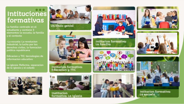 La familia: centrado en el estudiante y contiene 3 elementos la escuela, la familia y el contexto -La escuela: La revolucion industrial, la lucha por los derechos civiles, la fomracion politica republicana Edicacion y TIC: tecnologias de informacion educativo La iglesia: Reforma, separacion de la iglesia y el estado