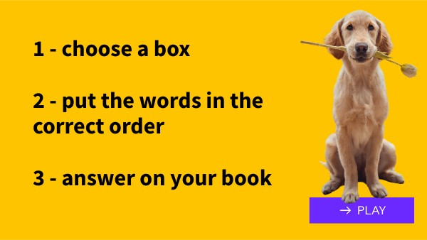 1 - choose a box 2 - put the words in the correct order 3 - answer on your book