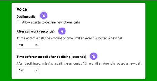 If the box is checked, allow Agents the option to “Accept” and “Decline” calls. If not checked, hide the “Decline” option. By default, Agents are given the option “Accept” and “Decline” phone calls routed to them.