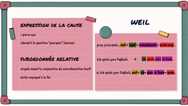 prop. principale , weil + sujet + compléments + verbe conj. .