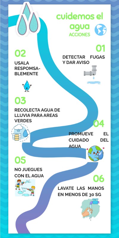 EN ESTA INFOGRAFIA MENCIONO ALGUNAS DE LAS ACCIONES QUE DEBEMOS DE REALIZAR PARA CUIDAR EL AGUA