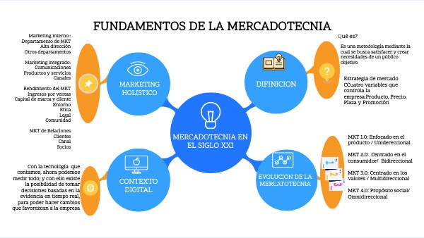 Marketing interno:: Departamento de MKT Alta dirección Otros departamentos Marketing integrado: Comunicaciones Productos y servicios Canales Rendimiento del MKT Ingresos por ventas Capital de marca y cliente Entorno Etica Legal Comunidad MKT de Relaciones Clientes Canal Socios