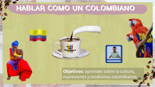 Objetivos: aprender sobre la cultura, expresiones y modismos colombianos.