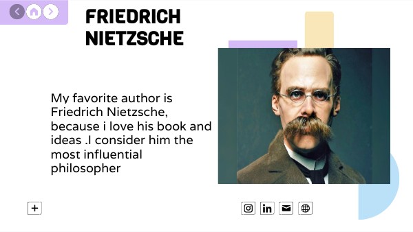 My favorite author is Friedrich Nietzsche, because i love his book and ideas .I consider him the most influential philosopher