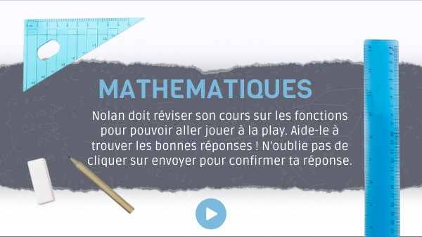 Nolan doit réviser son cours sur les fonctions pour pouvoir aller jouer à la play. Aide-le à trouver les bonnes réponses ! N'oublie pas de cliquer sur envoyer pour confirmer ta réponse.