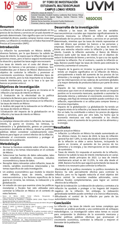 La inflación y las tasas de interés son temas complejos que requieren un análisis profundo y una combinación de enfoques metodológicos. La investigación sobre estos temas es crucial para comprender la dinámica de la economía mexicana y diseñar políticas públicas efectivas que promuevan el crecimiento económico, controlen la inflación y mejoren el bienestar de la población.