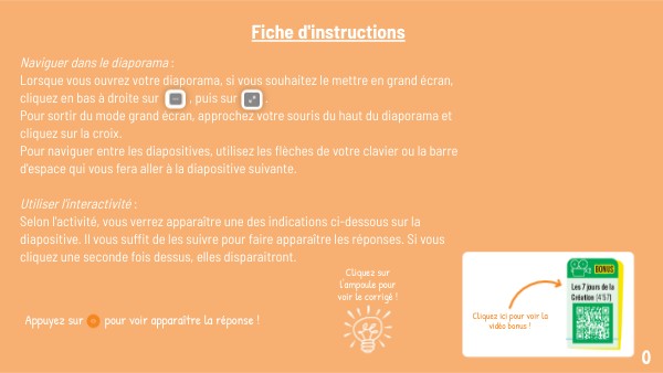 Utiliser l'interactivité : Selon l'activité, vous verrez apparaître une des indications ci-dessous sur la diapositive. Il vous suffit de les suivre pour faire apparaître les réponses. Si vous cliquez une seconde fois dessus, elles disparaitront.