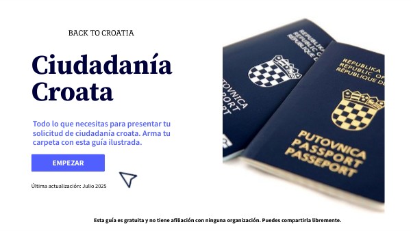 Esta guía fue creada para ayudar a las personas la diáspora croata a presentar su solicitud de ciudadanía. Más contenido para la diáspora croata en Tienes alguna sugerencia o quieres comunicarte conmigo? Escríbeme a