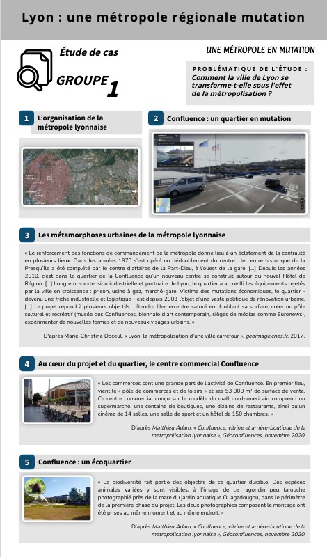 D'après Matthieu Adam, « Confluence, vitrine et arrière-boutique de la métropolisation lyonnaise », Géoconfluences, novembre 2020.