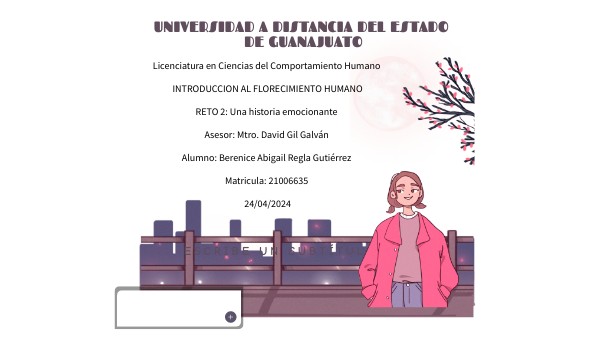 Licenciatura en Ciencias del Comportamiento Humano INTRODUCCION AL FLORECIMIENTO HUMANO RETO 2: Una historia emocionante Asesor: Mtro. David Gil Galván Alumno: Berenice Abigail Regla Gutiérrez Matricula: 21006635 24/04/2024