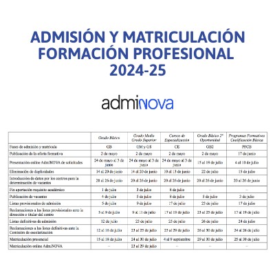 ADMISIÓN Y MATRICULACIÓN FORMACIÓN PROFESIONAL 2024-25