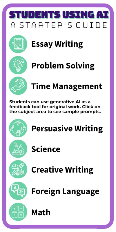 Students can use generative AI as a feedback tool for original work. Click on the subject area to see sample prompts.