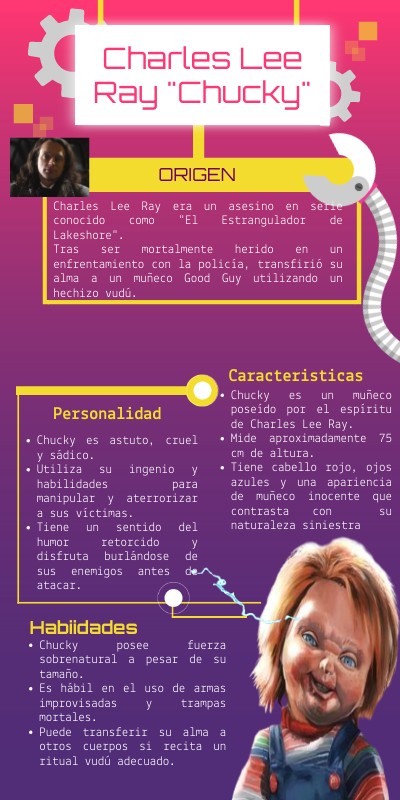 - Chucky es un muñeco poseído por el espíritu de Charles Lee Ray.