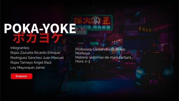 Todo tipo de industria o empresa que se originan en estos días, e incluso las ya existentes se enfrentan al plano de la competencia, por lo que cada día mas, se especializan en cuanto a calidad se refiere, ya que las demandas del mercado, debido a la existencia de tantas ofertas se ha vuelto cada vez mas exigente y siempre busca lo mejor y de mayor calidad no solo en productos, sino también en servicios. Por tales motivos y muchos otros más existen cuantiosos programas y dispositivos que evitan que se produzcan errores.En las siguientes diapositivas vamos a presentar el Poka-Yoke.