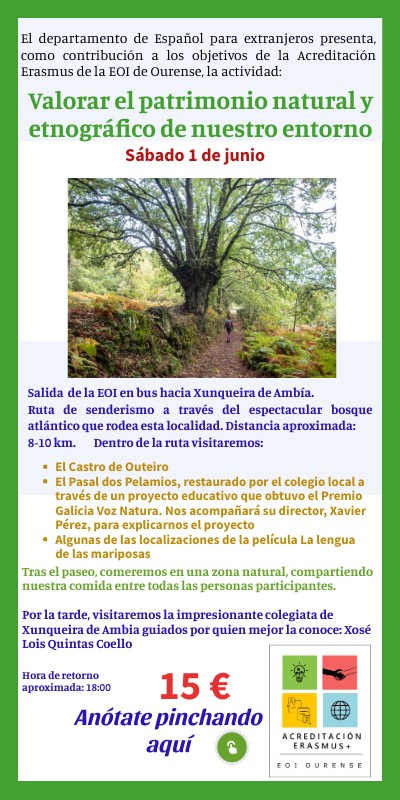 El departamento de Español para extranjeros presenta, como contribución a los objetivos de la Acreditación Erasmus de la EOI de Ourense, la actividad: