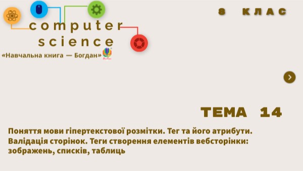 Урок №14. Поняття мови гіпертекстової розмітки. Тег та його атрибути.