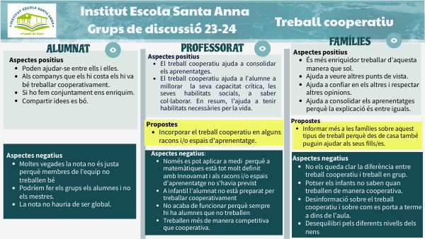 - Desinformació sobre el treball cooperatiu i sobre com es porta a terme a dins de l'aula.