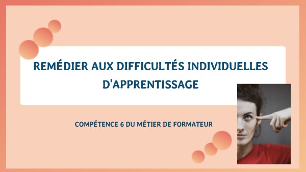 Les difficultés d'apprentissage sont temporaires, passagères. Elles se manifestent par un retard ou un déséquilibre ponctuel dans les apprentissages. Elles peuvent être reliées à divers facteurs. En tant que formateur, pour remédier à ces difficultés, nous devons les repérer.