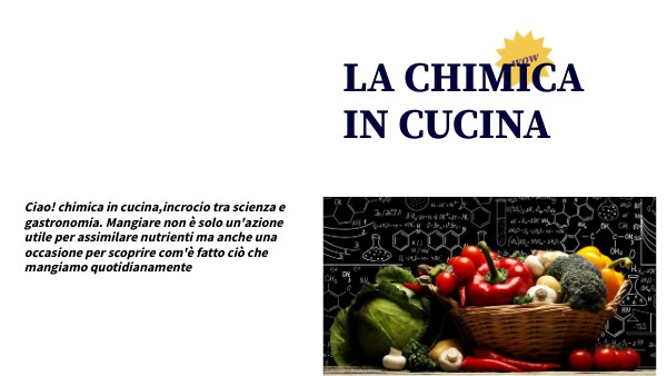 Ciao! chimica in cucina,incrocio tra scienza e gastronomia. Mangiare non è solo un'azione utile per assimilare nutrienti ma anche una occasione per scoprire com'è fatto ciò che mangiamo quotidianamente