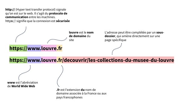 http:// (Hyper text transfer protocol) signale qu'on est sur le web. Il s'agit du protocole de communication entre les machines.https:// signifie que la connexion est sécurisée