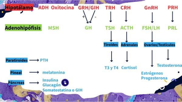 · Hombre: secreción de testosterona en testículos · Mujer: ovulación, formación del cuerpo lúteo y secreción de progesterona