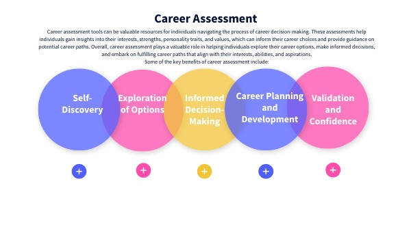 Career assessment tools can be valuable resources for individuals navigating the process of career decision-making. These assessments help individuals gain insights into their interests, strengths, personality traits, and values, which can inform their career choices and provide guidance on potential career paths. Overall, career assessment plays a valuable role in helping individuals explore their career options, make informed decisions, and embark on fulfilling career paths that align with their interests, abilities, and aspirations.Some of the key benefits of career assessment include:
