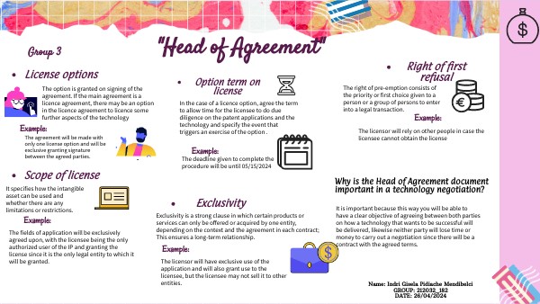 The agreement will be made with only one license option and will be exclusive granting signature between the agreed parties.