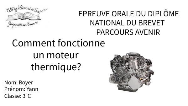 Je vous remercie de m'avoir écouté et espère que mes explications sur le moteur vous serons utiles.