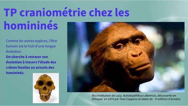 Comme les autres espèces, l'être humain est le fruit d'une longue évolution. On cherche à retracer son évolution à travers l'étude des crânes fossiles ou actuels des homininés.