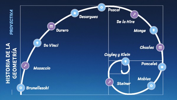 Leonardo Da Vinci ( (1452-1519). Polímata italiano. Fue una de las más destacadas figuras del renacimiento. Es uno de los grandes precursores de la geometría proyectiva al introducir técnicas para representar objetos en perspectiva. Sus observaciones sobre cómo los objetos se ven afectados por la distancia y el ángulo de visión, así como su estudio de la intersección de líneas y planos en sus pinturas, ayudaron a sentar las bases para el desarrollo posterior de la geometría proyectiva