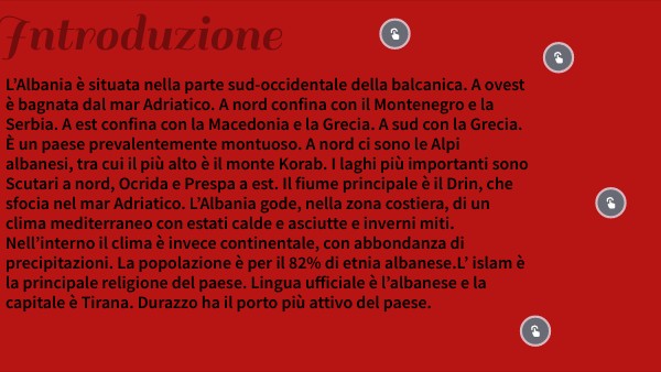 L’Albania è situata nella parte sud-occidentale della balcanica. A ovest è bagnata dal mar Adriatico. A nord confina con il Montenegro e la Serbia. A est confina con la Macedonia e la Grecia. A sud con la Grecia. È un paese prevalentemente montuoso. A nord ci sono le Alpi albanesi, tra cui il più alto è il monte Korab. I laghi più importanti sono Scutari a nord, Ocrida e Prespa a est. Il fiume principale è il Drin, che sfocia nel mar Adriatico. L’Albania gode, nella zona costiera, di un clima mediterraneo con estati calde e asciutte e inverni miti. Nell’interno il clima è invece continentale, con abbondanza di precipitazioni. La popolazione è per il 82% di etnia albanese.L’ islam è la principale religione del paese. Lingua ufficiale è l’albanese e la capitale è Tirana. Durazzo ha il porto più attivo del paese.