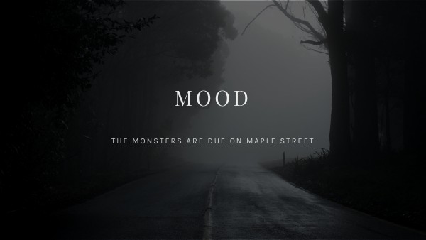In “The Monsters Are Due on Maple Street,” by Rod Serling, a neighborhood falls to paranoia when some electrical devices behave strangely. Analyzing the mood of a drama will help the reader to understand the setting and how the characters are feeling, to make connections to themes or messages in the text. Let’s look at how one reader analyzes mood in the text: