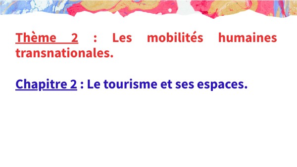 Thème 2 : Les mobilités humaines transnationales. Chapitre 2 : Le tourisme et ses espaces.